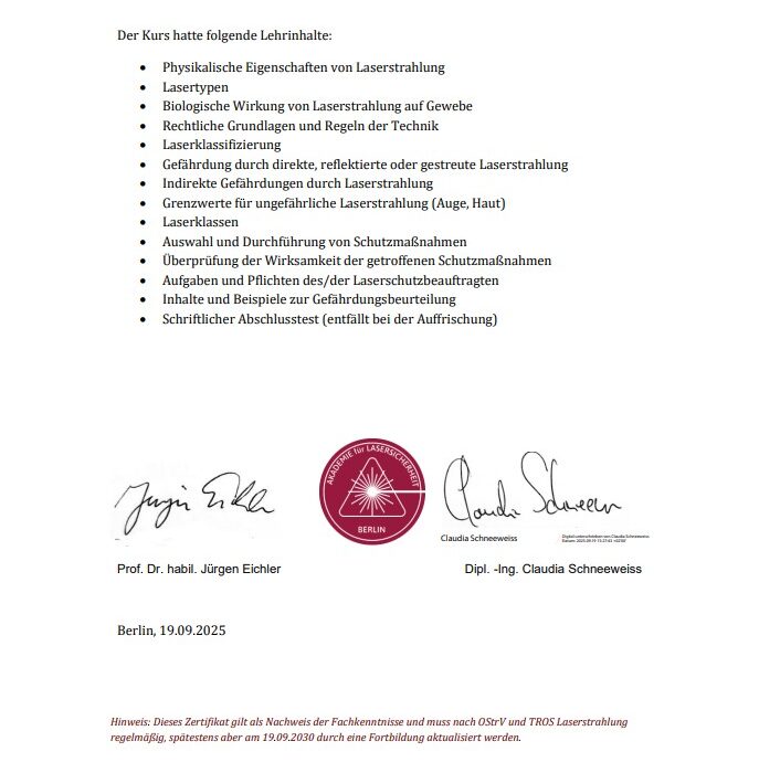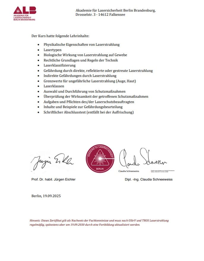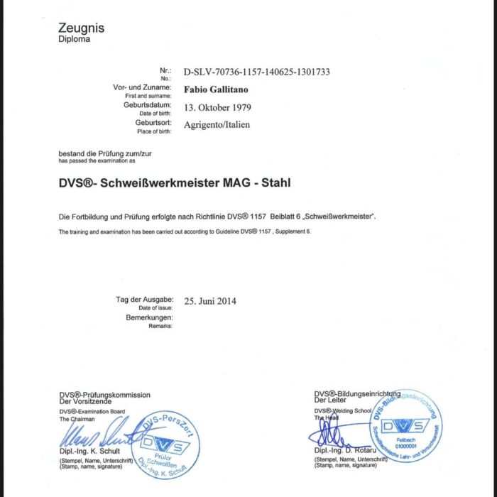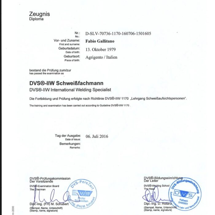 Diese Qualifikationen belegen die umfassende technische Expertise in der Planung, Durchführung und Überwachung anspruchsvoller Schweiß- und Laserarbeiten – von industriellen Großprojekten bis zu präzisen Sonderanfertigungen.